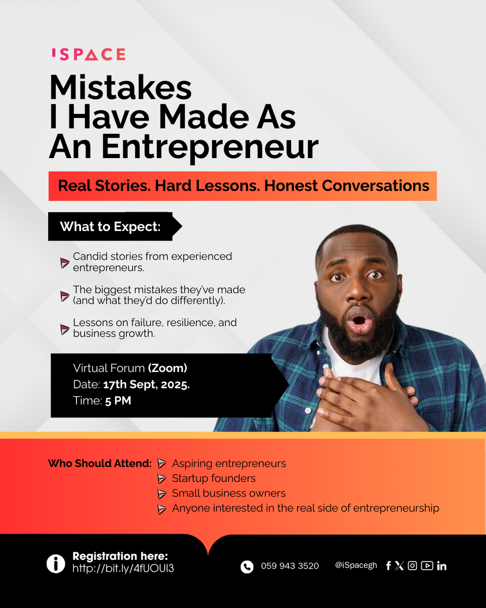 Join us for “Mistakes I Have Made As An Entrepreneur”, a candid conversation where experienced founders share their biggest missteps, what they’d do differently, and how they turned setbacks into growth.