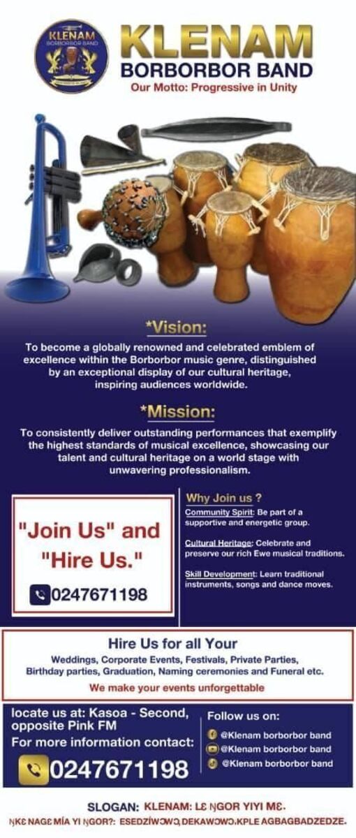 Join the Klenam Borborbor Band for a special Sunday rehearsal session that promises to be lively and engaging! 🎶✨ Whether you're a music enthusiast or just looking for an entertaining experience, this event offers a unique opportunity to witness the band prepare for upcoming performances.