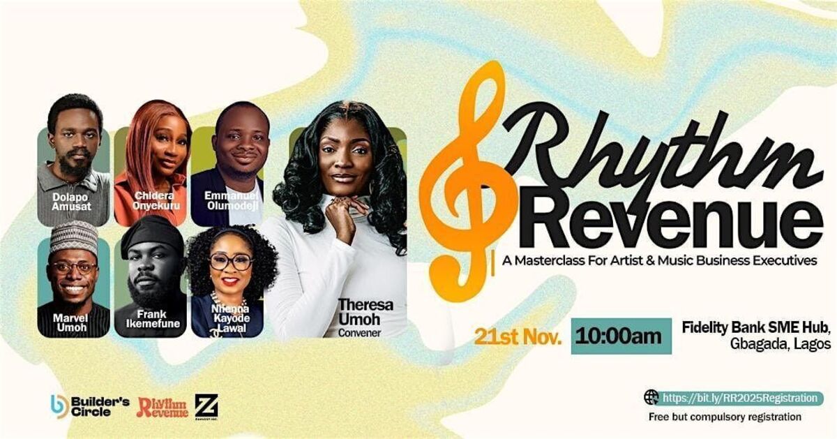 🎶 RHYTHM AND REVENUE is a captivating masterclass designed to empower emerging artists, entertainment creatives, and music business professionals. Dive into an immersive experience where industry leaders share exclusive insights, strategic guidance, and practical knowledge to elevate your career in the vibrant African entertainment ecosystem. From visionary sessions on building impactful careers to actionable strategies for revenue maximization, this event is your gateway to transforming passion into sustainable success. 🌟✨
