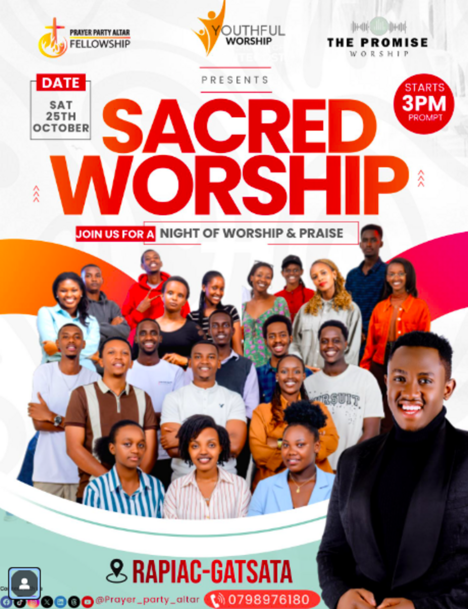 On Saturday, 25th October, prayer and worship collide in a vibrant atmosphere where youth and believers come together to experience the divine presence. The event features uplifting religious music, spiritual reflections, and a community united in faith. 🕊️🙏