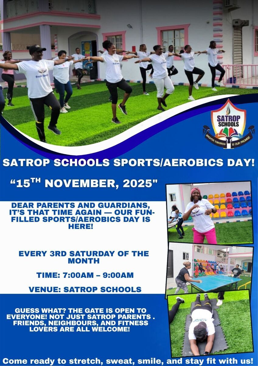 Join us for an energetic and fun-filled Sports & Aerobics Day at SATROP SCHOOLS! π This lively event is perfect for students, parents, friends, neighbors, and fitness enthusiasts eager to celebrate health and community spirit. Experience a day packed with sports activities, aerobics sessions, and opportunities to connect with like-minded individuals. The event promotes active living in a friendly environment, encouraging everyone to participate and enjoy the fitness vibe. Whether you're a seasoned athlete or just looking to get moving, this event welcomes all levels. Come and be part of a vibrant celebration of wellness and teamwork! πͺπ€ΈββοΈ
