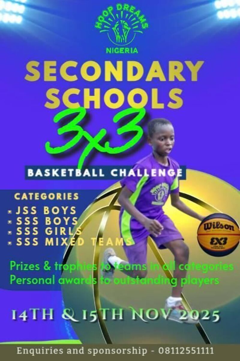π Secondary Schools 3x3 Basketball Tournament is an exciting competition that promises a dynamic and energetic atmosphere. This event is designed to give schools, especially those that typically face challenges fielding traditional teams, an innovative platform to showcase their talent and compete in a fast-paced 3x3 basketball format. Expect thrilling matches, school pride, and a vibrant sports environment that encourages participation and sportsmanship. Whether you're a student, coach, or supporter, this tournament offers a fantastic opportunity to witness young talent in action and enjoy the spirit of competitive sports. Join us for two days of intense basketball action and community engagement! π