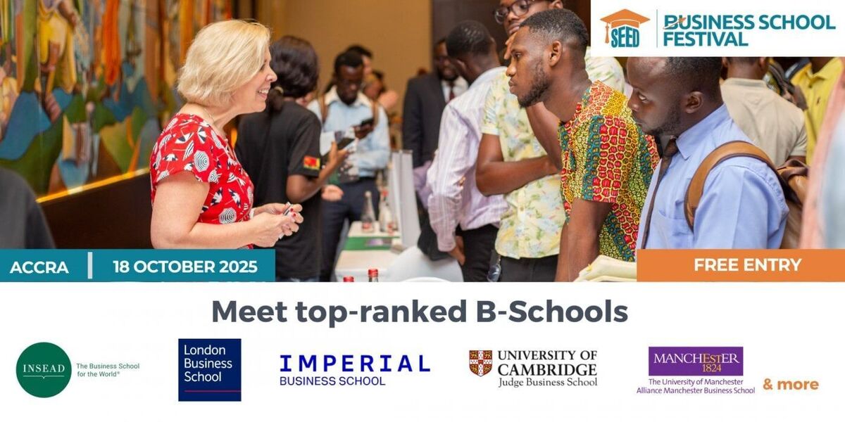 🌟 SEED Business School Festival 2025 - Accra is an exciting gathering tailored for future global business leaders! This vibrant event offers a unique opportunity to explore top-ranked international business schools, connect with admission directors, and gain insights into studying abroad. Whether you're eyeing an MBA or a specialized master’s program, this festival provides personalized guidance, exclusive scholarship opportunities, and networking sessions with alumni and industry experts. Don’t miss your chance to secure a Golden Ticket for a privileged face-to-face meeting with leading B-school representatives. Join us and take a decisive step towards your international education ambitions! 🎓🌍
