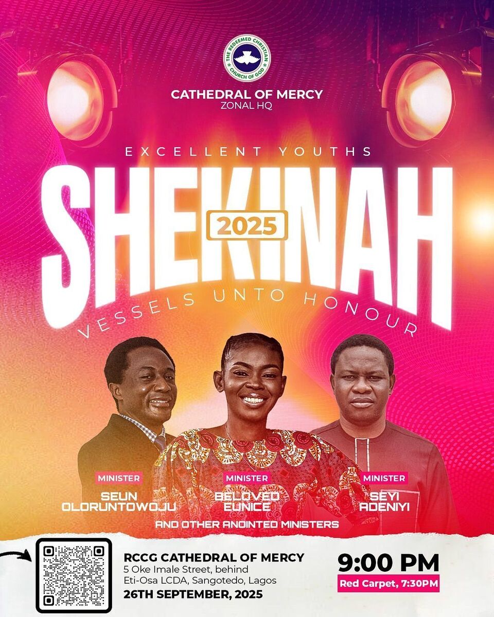 Experience a powerful gathering of faith, praise, and celebration at Shekinah 2025. This event is more than just a meeting; it's a movement of vessels unto honor, rising through daily breakthroughs and victories. Join us as we lift our voices in unison, dancing and praising with fervor, because we are called to be vessels fit for honor! 🎉✨