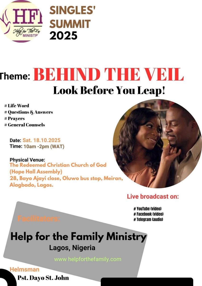 ๐ SINGLES' SUMMIT 2025 is an inspiring event dedicated to empowering singles and fostering meaningful connections. Under the theme BEHIND THE VEIL: Look Before You Leap!, attendees will explore personal growth, relationship insights, and opportunities to network with like-minded individuals. The summit features engaging sessions and a supportive atmosphere designed to help you navigate the journey of singles life with confidence and purpose. Join us for an energizing experience that promises to enlighten and connect you in a vibrant community! ๐ฌโจ