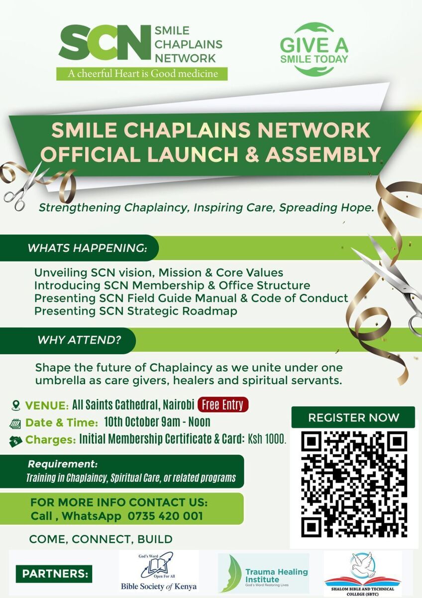 ๐ Join us for the exciting Launch of the Smile Chaplains Network in Nairobi! This event marks the beginning of a new chapter for chaplains across Kenya and East Africa, fostering spiritual growth, community engagement, and collaboration. Expect inspiring speeches, networking opportunities, and a chance to be part of a transformative movement. Whether you're a religious leader, community member, or interested in spiritual development, this launch is an event you won't want to miss! ๐โจ