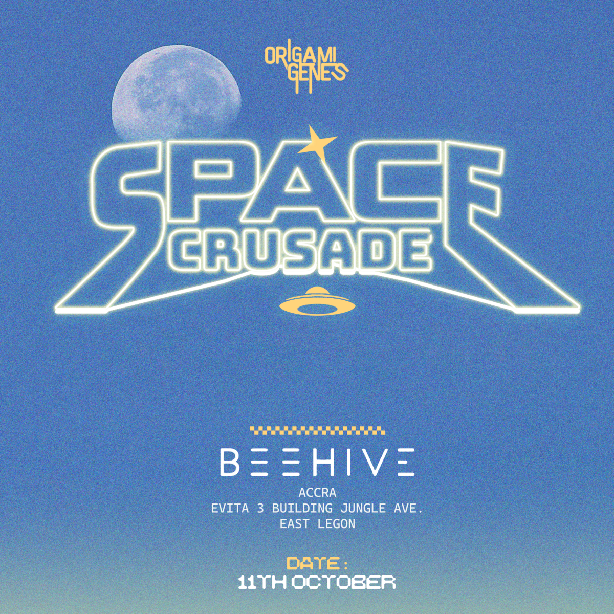 We are back like we never left and ready for lift off. The crusade continues Space crusade is back! Last time was amazing this year promises to be even better. Join us at Beehive Accra, Evita 3 building as we rave like never before. We have your favorite DJs and MCs all under one roof. Join us on October 11th for an experience through space.