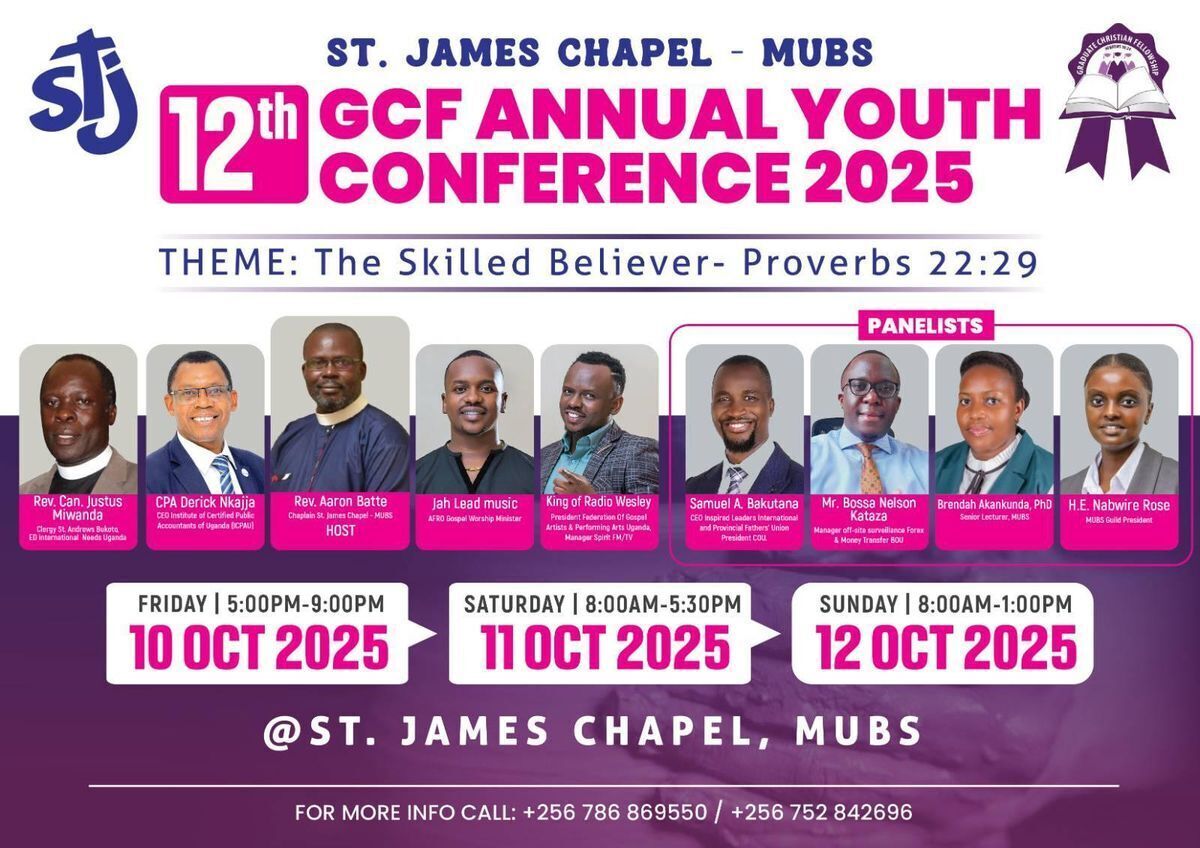 Join us for the 12th Annual Youth Conference organized by St. James Chapel MUBS. This vibrant event offers a platform for young people to connect, learn, and grow through inspiring sessions, networking opportunities, and engaging activities. Whether you're a student, staff, or community member, this conference is a perfect chance to be part of a dynamic youth movement. 🎉✨