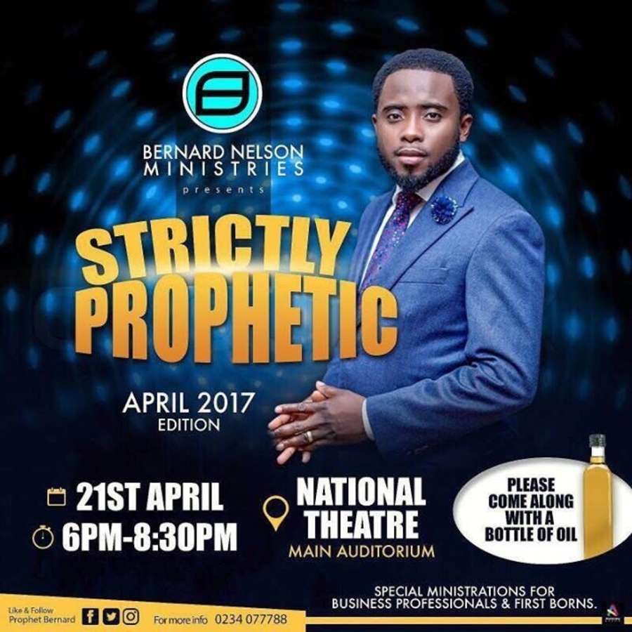 This month's STRICTLY PROPHETIC will be held at the main auditorium of the National Theatre. Please come along with a bottle of oil.