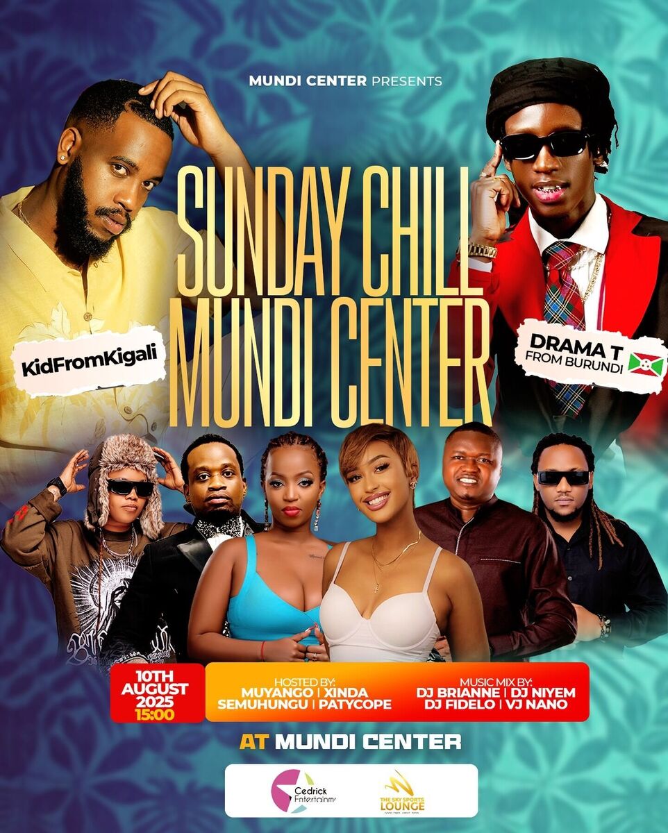 This Sunday, 10th August 2025, Mundi Center transforms into a hub of music, entertainment, and good vibes! Experience electrifying performances by KidFromKigali and Drama T from Burundi, alongside top DJs like DJ Brianne, DJ Nyem, DJ Fidelo, and visual artist VJ Nano. Hosted by the lively Muyango, Xinda Semuhungu, and Patycope, the event promises non-stop energy and fun. Whether youโre dancing, relaxing, or connecting with friends, this is your perfect Sunday plan! ๐๐บ