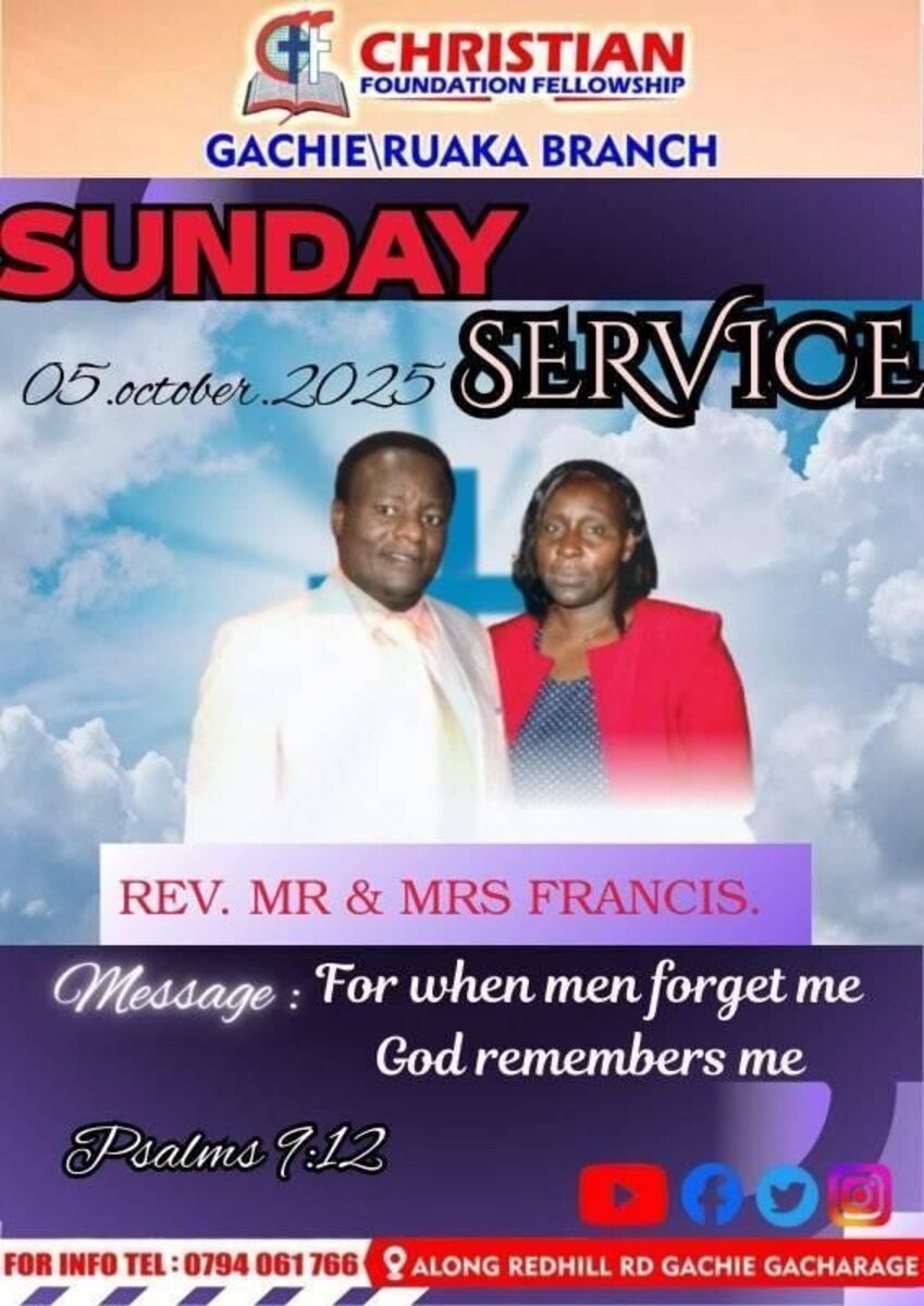 Join us for a spiritually uplifting Sunday service at CFF Gachie/Ruaka Branch Church. Experience inspiring worship, powerful sermons, and a warm community atmosphere. Whether you're a regular attendee or visiting for the first time, everyone is welcome to partake in this blessed gathering. Come and be refreshed in faith, hope, and love! ✨🙏