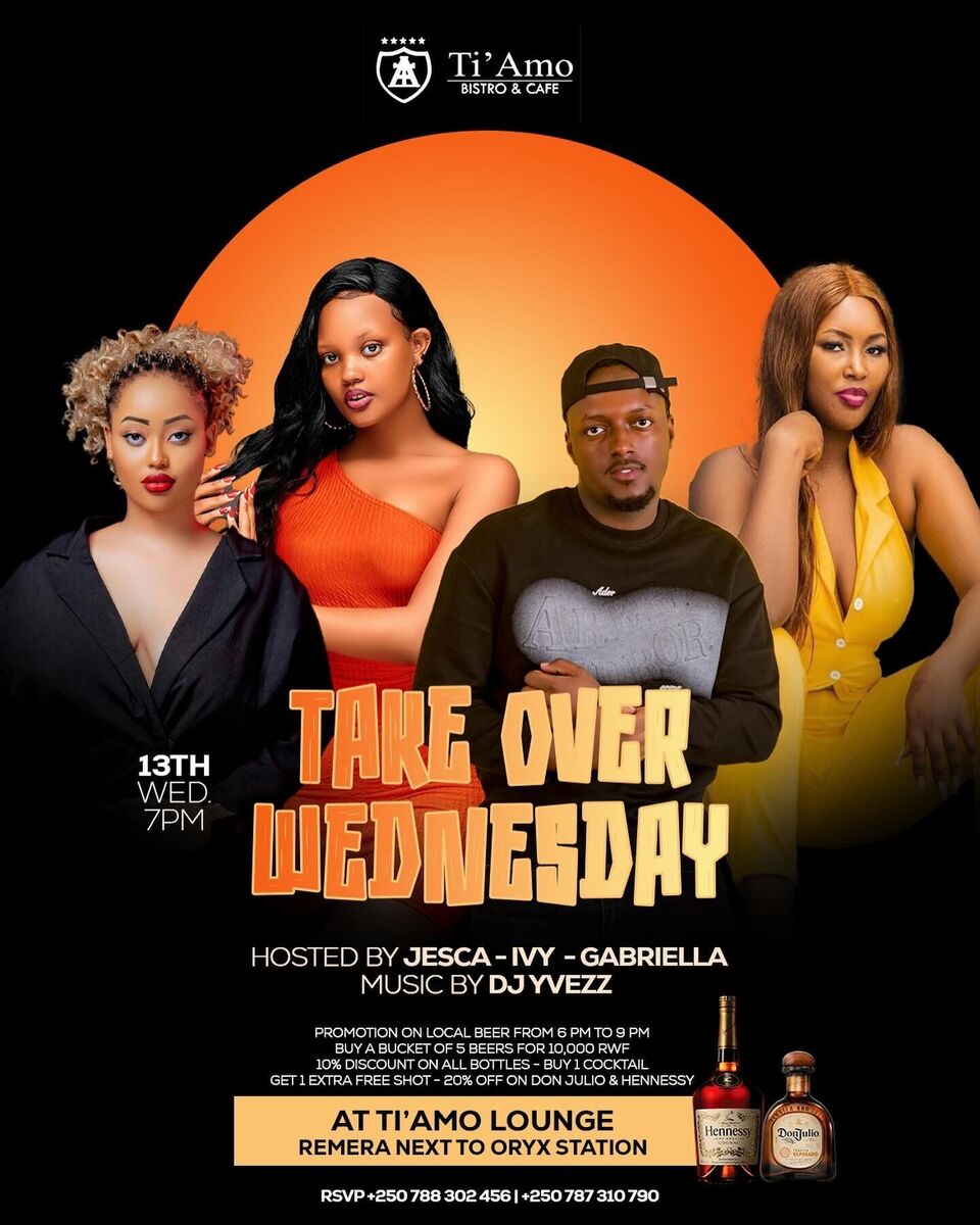Get ready for an electrifying mid-week party at Ti’Amo Lounge in Remera, next to Oryx Station. Hosted by Jesca, Ivy & Gabriella, with DJ Yvezz spinning the decks, this event promises vibrant energy and unforgettable vibes! 🎶🔥