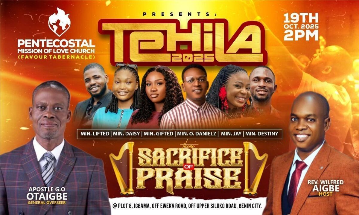 Join us for TEHILA 2025 - Sacrifice of Praise! Experience a spiritual gathering filled with worship, praise, and divine celebration. This event promises an uplifting atmosphere where faith and community come together to honor and glorify. Don't miss out on this soulful experience that will inspire and renew your spirit. ✨🙏