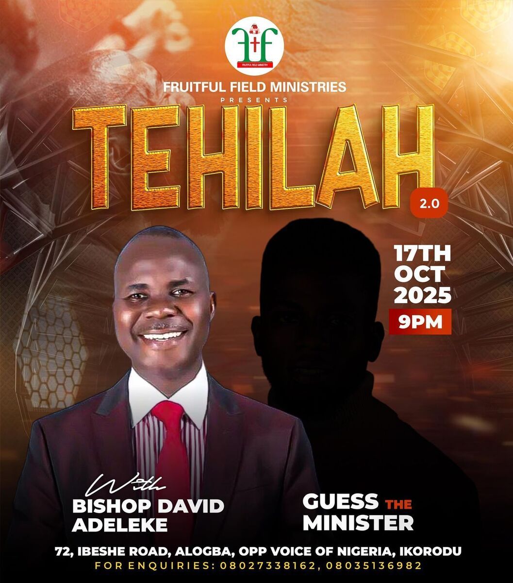 Experience a vibrant spiritual celebration with TEHILLAH 2025, a powerful gathering at the heart of Lagos. Join passionate worshippers and music ministers as they lead with sincerity, truth, and the Spirit’s power, creating an atmosphere of divine encounter and uplifting praise. This event promises soulful performances, heartfelt worship sessions, and an inspiring journey of faith and unity. Dive into an experience where music meets spirituality, and hearts are transformed in a setting designed for impactful worship and community connection. 🎶🙏✨