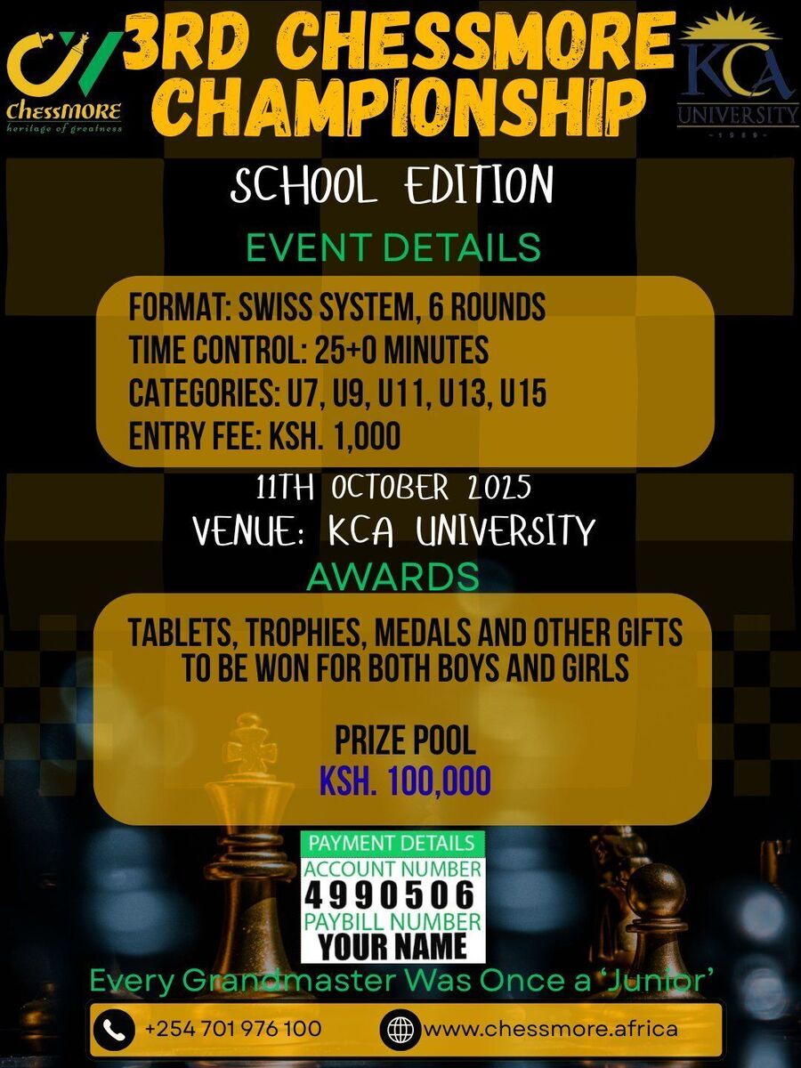 Get ready for the 3rd ChessMORE Championship – School Edition — a premier event designed to ignite young minds and foster a love for chess! 🎉