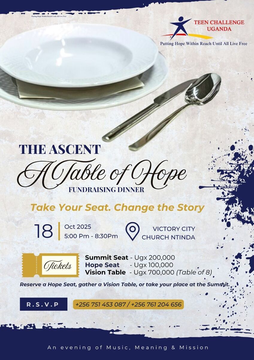 🌟Join us for an inspiring evening at THE ASCENT: A Table of Hope 🌟. This heartfelt event is more than just a dinner—it’s a movement to uplift and restore lives weighed down by addiction, shame, and hopelessness. Experience powerful stories of transformation, hope, and community as we gather to support Teen Challenge Uganda’s mission.