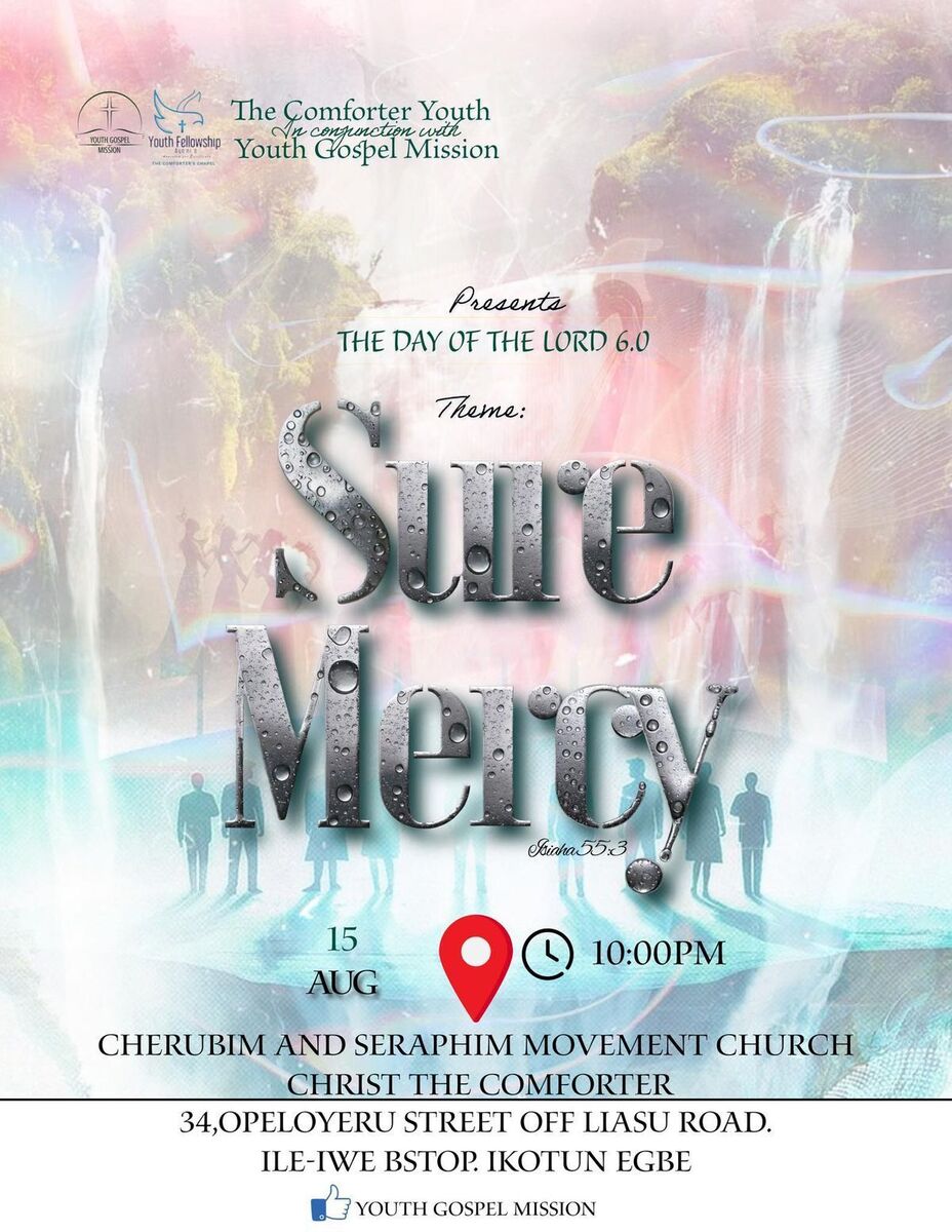 Experience a spiritual gathering like no other with The Day of the Lord Volume 6. Join us for an evening of profound worship, inspiring messages, and community fellowship. This event is designed to uplift your spirit and deepen your faith, centered around themes of mercy and grace. Come and be part of an empowering spiritual experience that promises to leave you renewed and energized. πΆβ¨