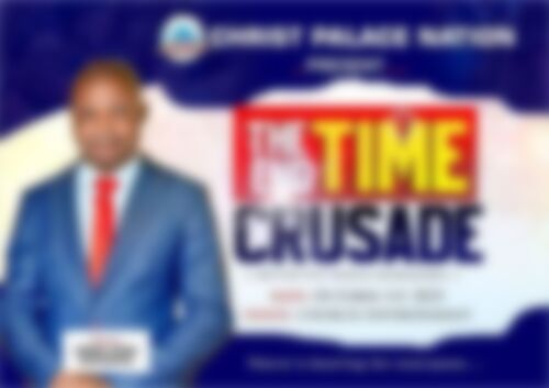 ✨ Join us for the highly anticipated End Time Crusade — a powerful spiritual gathering designed to overflow you with grace and divine blessings! Experience an inspiring service led by our renowned man of God, filled with worship, prayer, and prophetic declarations. Whether you're seeking spiritual renewal or a breakthrough, this event promises anointed moments that will uplift your soul. Don't miss this opportunity to connect with the divine and fellow believers in a vibrant atmosphere of faith and hope! 🙏🔥