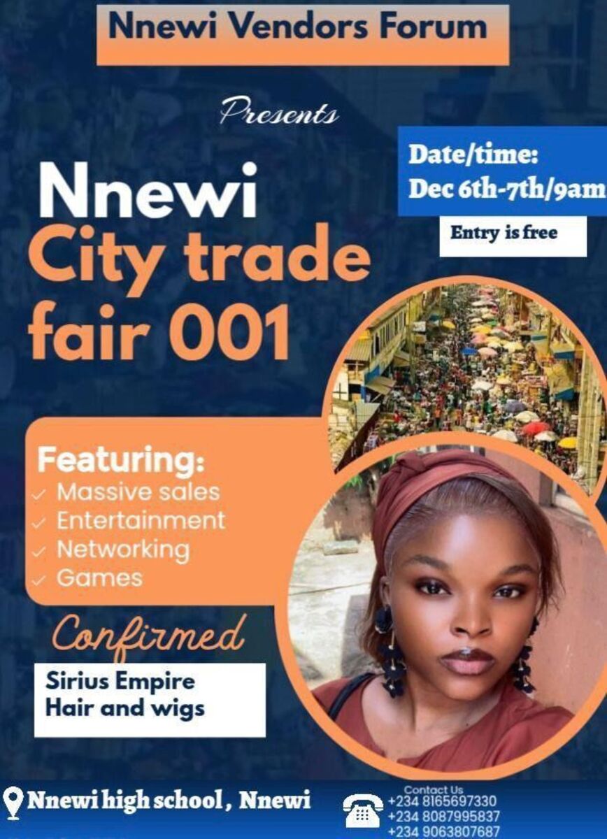 🌟Get ready for an exciting trade fair! 🎉 Organized for the first time at Nnewi High School, this event promises to be the biggest trade fair of the year. Vendors from around the globe are invited to showcase their products, network, and make incredible sales. Whether you're a buyer or a seller, this is your chance to be part of a vibrant marketplace filled with unique items, especially festive Christmas goodies at unbeatable prices! Don't miss out on the fun, shopping, and opportunities to connect with diverse vendors. 🛍️🔥