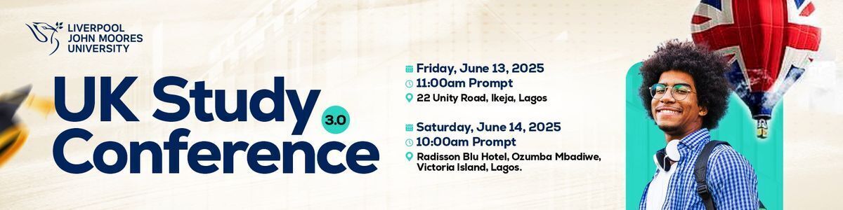 Join us for the UK Study Conference hosted by Liverpool John Moores University at the luxurious Radisson Blu Anchorage Hotel, Lagos. This is an excellent opportunity for prospective students to engage directly with the university's representatives and gain insights into programs, admissions, and visa processes.