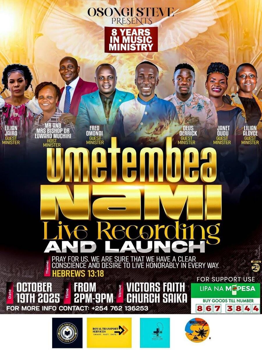 🎶 UMETEMBEA NAMI LIVE RECORDING is an inspiring worship concert designed to bring believers together in praise and worship. This special event will be recorded live, capturing the spirit of unity and devotion through heartfelt songs. Join us in celebrating 8 years of worship, community, and spiritual growth. Whether you're a worshiper, music lover, or someone seeking spiritual upliftment, this event promises an uplifting experience filled with soulful music and fellowship. Don’t miss this opportunity to be part of a memorable night of worship and celebration! 🙌✨