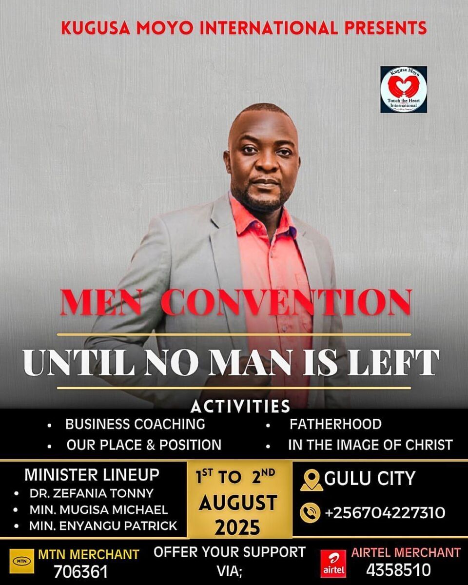 Greetings and I hope you are staying blessed! Men go through a lot and often have no one to speak to. We have organized a two-day men's gathering in Northern Uganda, specifically in Gulu City, to facilitate discussions among fellow men.