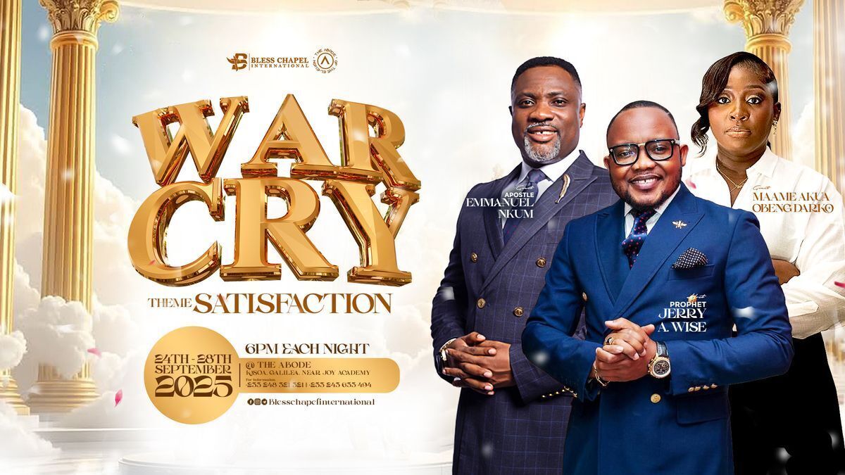 🔥WAR CRY 2025 is an electrifying spiritual gathering where the horns are blowing and warriors from all around assemble for a supernatural encounter! Join us for an unforgettable experience filled with praise, worship, and divine satisfaction. This event promises to ignite your faith and energize your soul in a powerful atmosphere of unity and worship. Don't miss out on this prophetic gathering that will leave you inspired and renewed! 🎉🙌