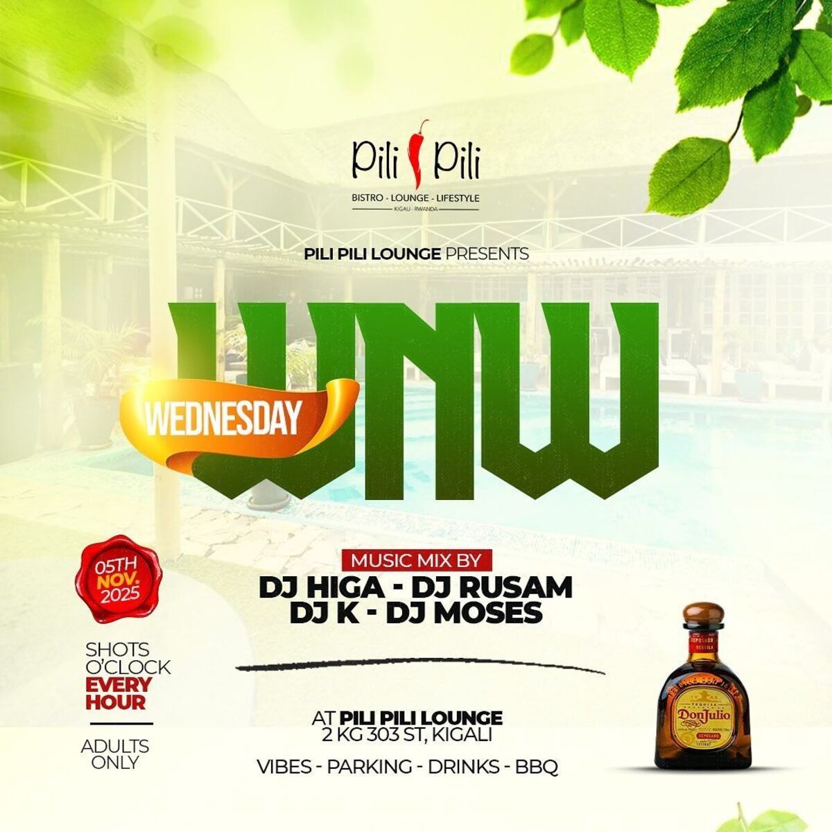 Wrap up your Wednesday with an electrifying night at Pili Pili! ππ₯ Experience live Champions League action, nonstop music from DJ Rusam, DJ Higa, & DJ K, plus a special guest appearance by Ugandan DJ Etania. This midweek party promises great vibes, energetic beats, and fun-filled moments to keep your night lively and memorable! ππΆπ₯