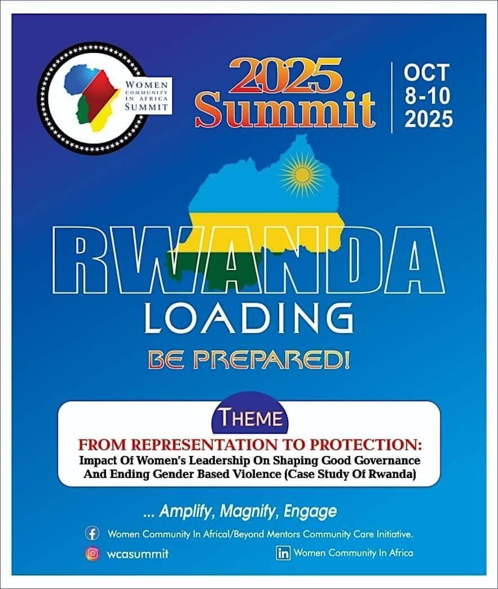 ๐โจ Join us at the Women Community in Africa Rwanda 2025 Summit โ a pivotal gathering dedicated to empowering women leadership across Africa! This summit aims to spotlight the vital role women play in shaping good governance and ending Gender-Based Violence (GBV). Through inspiring keynote sessions, success stories like Rwandaโs remarkable progress, and regional collaboration, attendees will explore impactful strategies to foster womenโs leadership, influence policy, and drive positive change. Engage with policymakers, women leaders, and experts from across the continent in a dynamic environment focused on regional learning, advocacy, and empowerment. Don't miss this opportunity to be part of a transformative movement! ๐๐ฉโ๐ผ๐ช