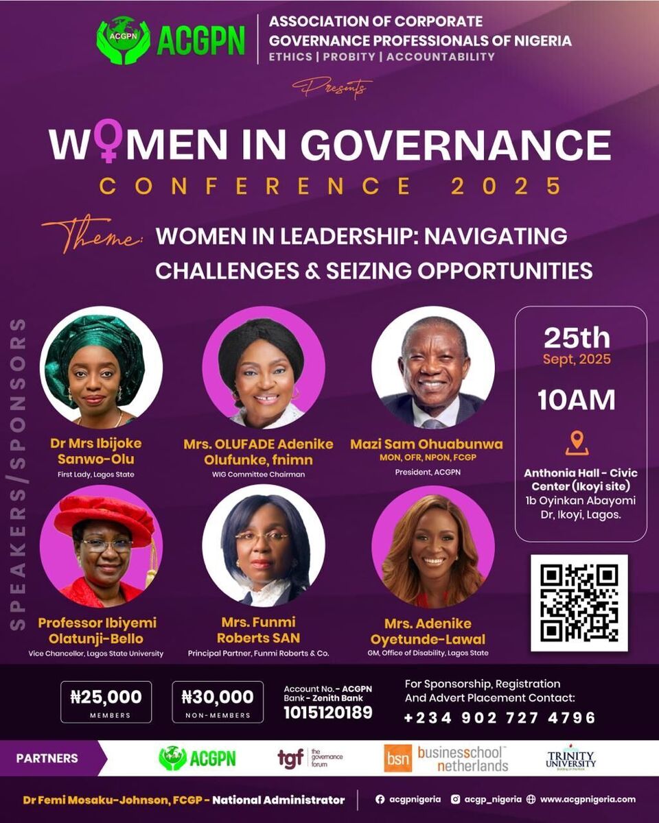 Join the Women in Governance Conference 2025, proudly hosted by the Association of Corporate Governance Professionals of Nigeria (ACGPN)!