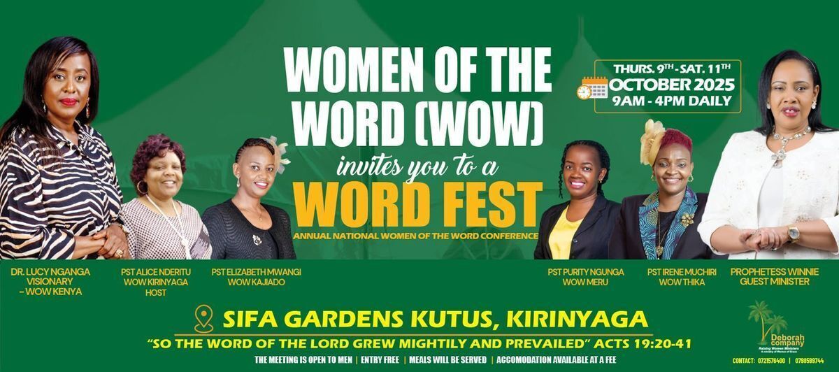 ๐ Join us at Word Fest, an inspiring celebration of literature, culture, and community! Set in the beautiful Sifa Gardens, Kutus, this vibrant event offers a unique opportunity to immerse yourself in engaging activities, inspiring talks, and creative performances. Whether you're a book lover, a writer, or simply looking for a memorable experience, Word Fest promises a delightful escape into the world of words and stories. Come and be part of this enriching journey! ๐โจ