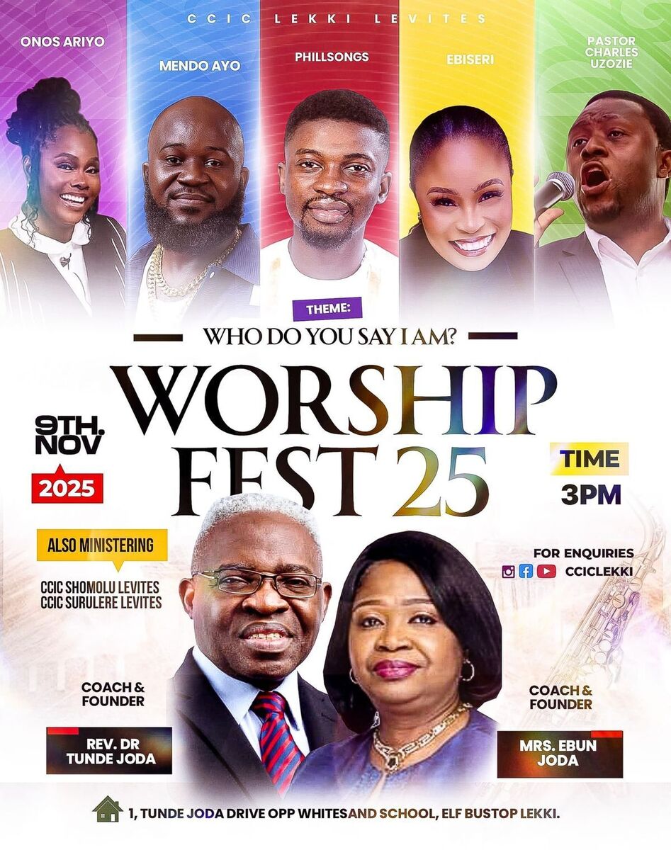 Experience a night of divine worship, powerful praise, and spiritual encounter at Worshipfest 2025. Join us in celebrating God's presence through heartfelt worship sessions, inspiring teachings, and a vibrant community of believers. This event is designed to uplift, empower, and deepen your faith as we declare the greatness of God and discover our true identity in Christ. Whether you're a worship leader, a believer seeking renewal, or someone curious about faith, Worshipfest 2025 promises an unforgettable spiritual journey filled with music, prayer, and divine miracles. 🙌✨