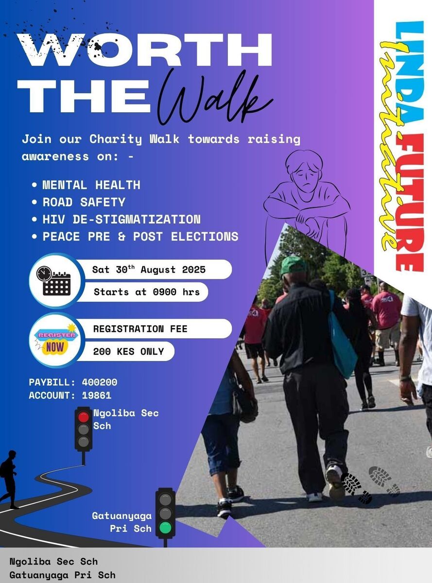 #WorthTheWalk, #LindaFutureInitiative, #WalkForChange, #MentalHealthAwareness, #EndHIVStigma, #SafeRoads, #PeacefulElections, #PartnerWithUs