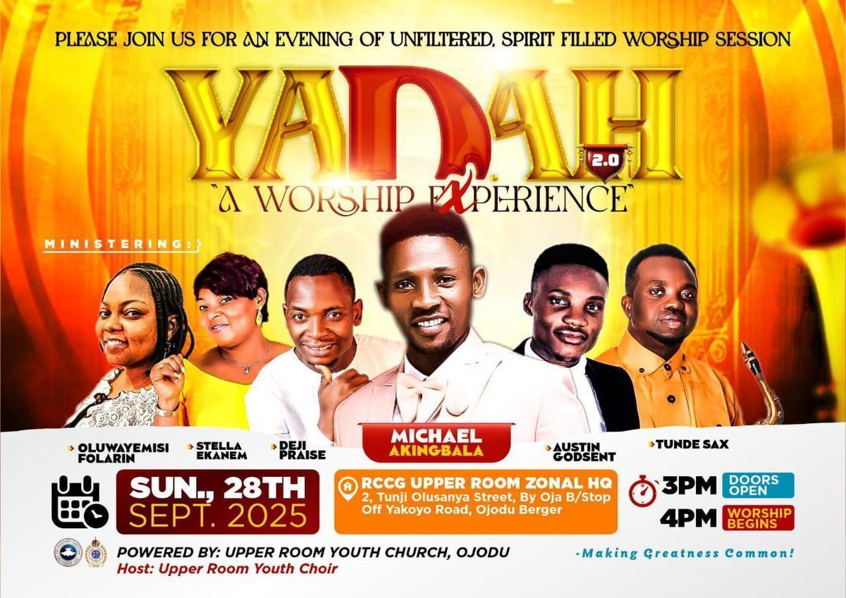 YADAH - A Worship Experience is set to be an unforgettable spiritual gathering, where worship, praise, and divine presence converge. Join us for an evening filled with powerful worship, anointed praise, and a time to encounter God's glory. Don’t miss this divine moment to experience the move of the Spirit in a way that will uplift and transform your soul. 🙌