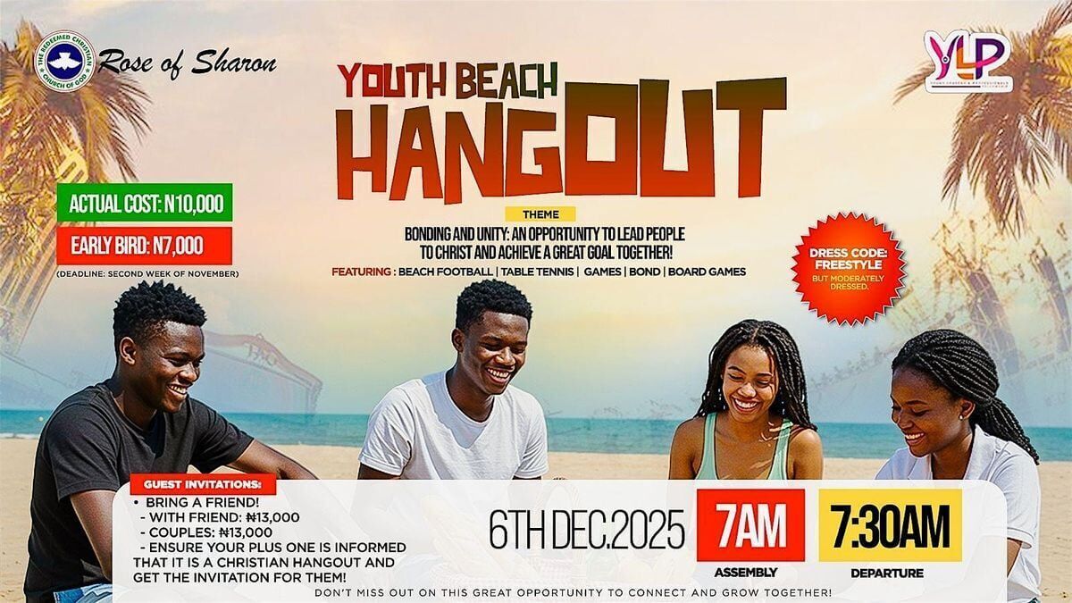 Welcome to the YLPF Youths Hangout! Join us at Barracuda Beach Resort, Lagos for a day of exciting activities, great music, and delicious food! Scheduled for December 6, 2025, starting at 7:00 AM (Africa/Lagos Time). Whether you want to connect with other young people or just unwind, this event is perfect for you!