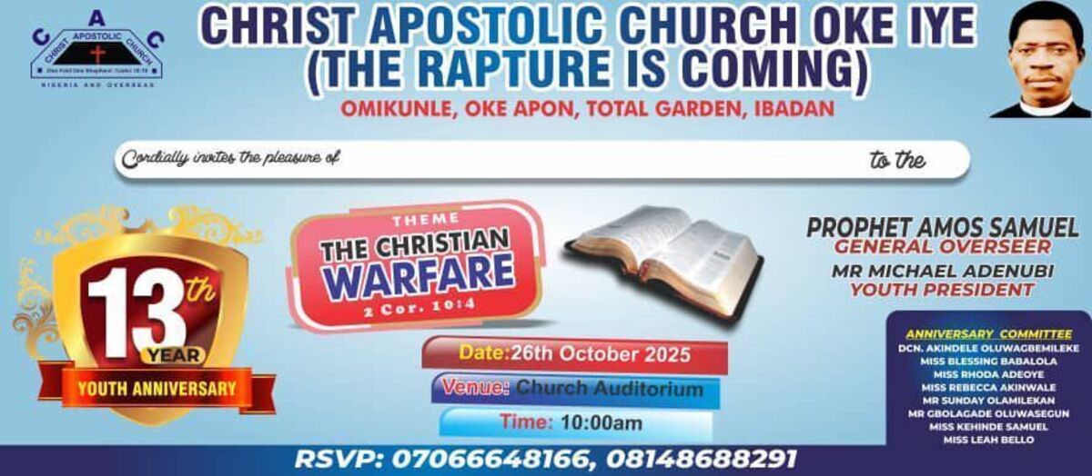 Join us for a vibrant celebration of our Youth Anniversary! π This event is a heartfelt gathering designed to inspire, motivate, and connect young minds in an atmosphere filled with excitement and camaraderie. Expect engaging activities, uplifting speeches, and memorable moments that will leave you energized and empowered. Whether you're a youth eager to network or simply looking to be part of a meaningful celebration, this event promises to be an unforgettable experience. Come and be part of our growing community as we mark this special milestone together! β¨